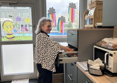 Mit viel Liebe und Hingabe sorgt unsere Küchenfee Frau Schröder jeden Tag für das leibliche Wohl unserer Kinder in der Zwergenburg West. Ob Frühstück, Mittagessen vom Caterer oder Vesper – alles wird von ihr frisch und mit großer Sorgfalt vorbereitet.