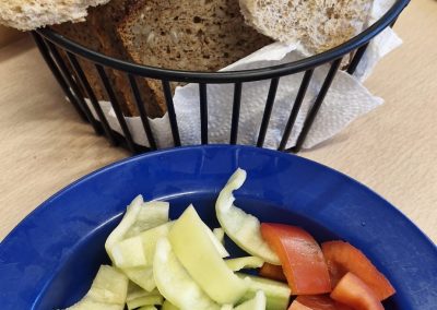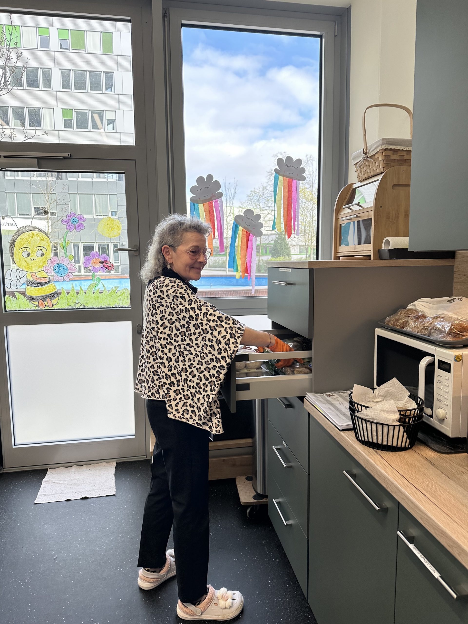 Besonders schön ist ihre Kreativität: Gurken oder Obst werden liebevoll in kleine Motive ausgestanzt, die den Kindern nicht nur gut schmecken, sondern auch ein Lächeln ins Gesicht zaubern. Gerade zu besonderen Anlässen lässt sich Frau Schröder immer wieder etwas Neues einfallen. So gibt es zur Osterzeit sogar Toastbrot in niedlicher Hasenform.